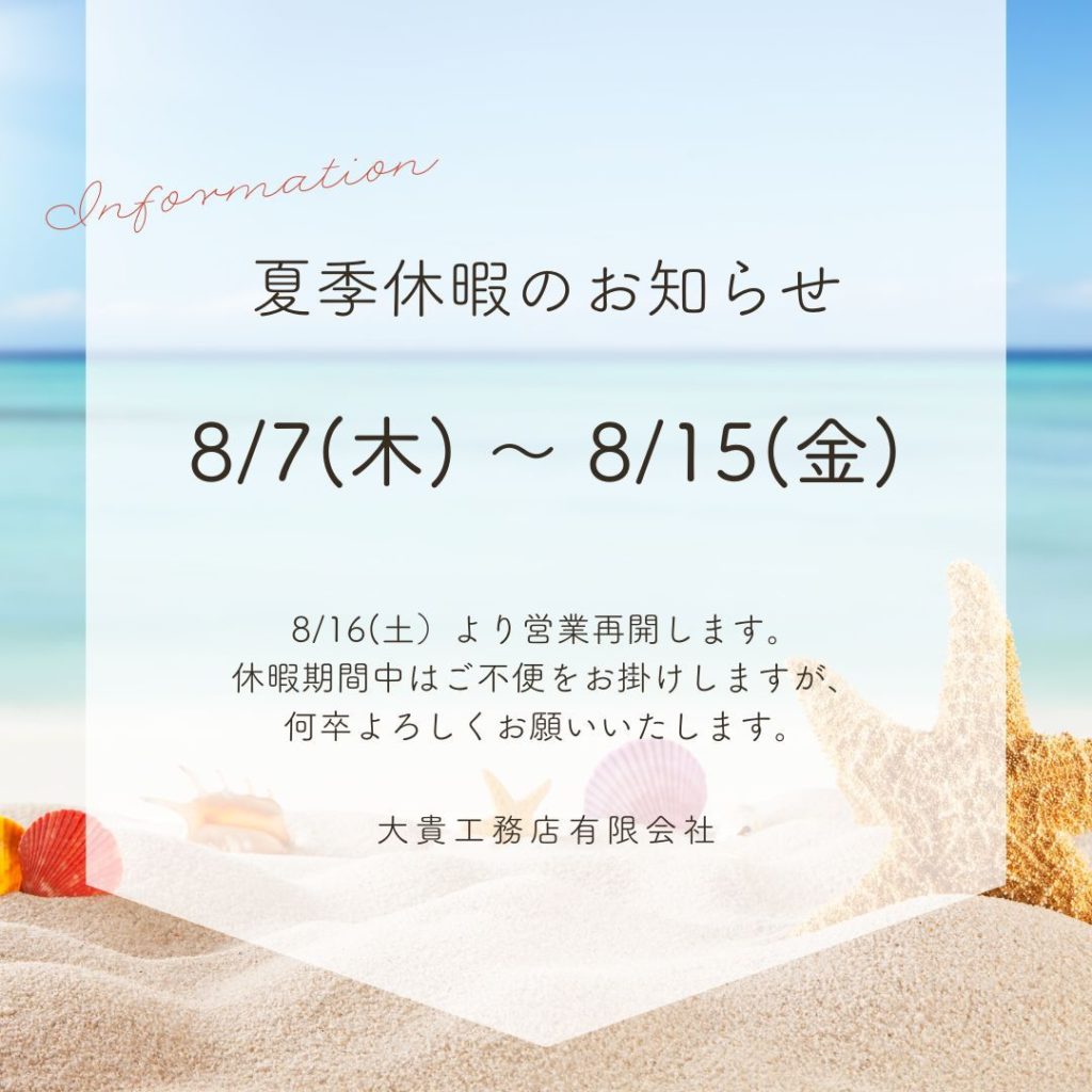 夏季休暇のお知らせ